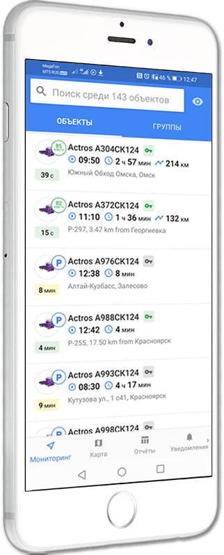 Отслеживание транспортного средства в режиме реального времени позволяет видеть его местоположение, предупреждает отклонение от маршрута, дает информацию о времени и месте всех остановок и стоянок